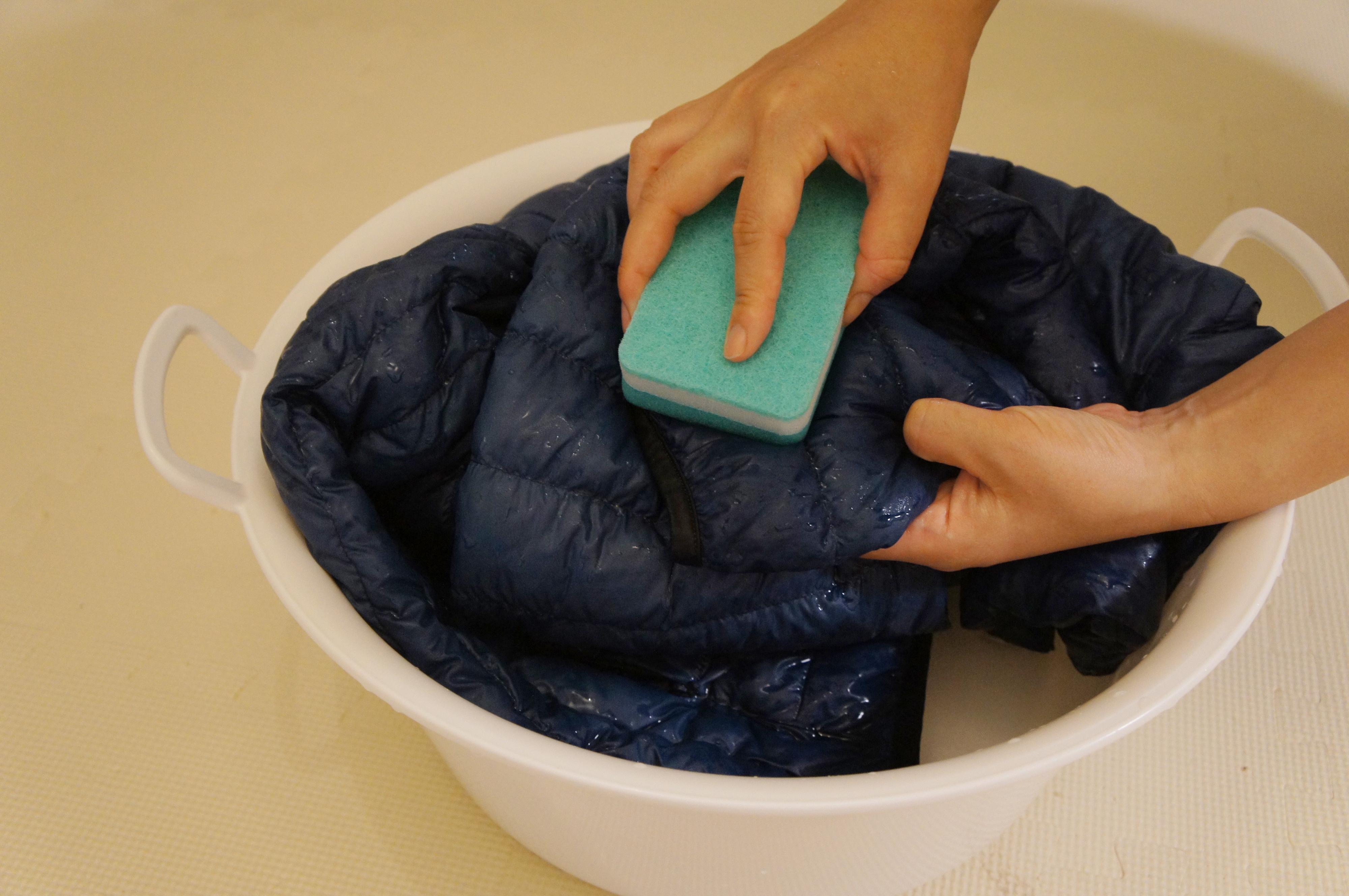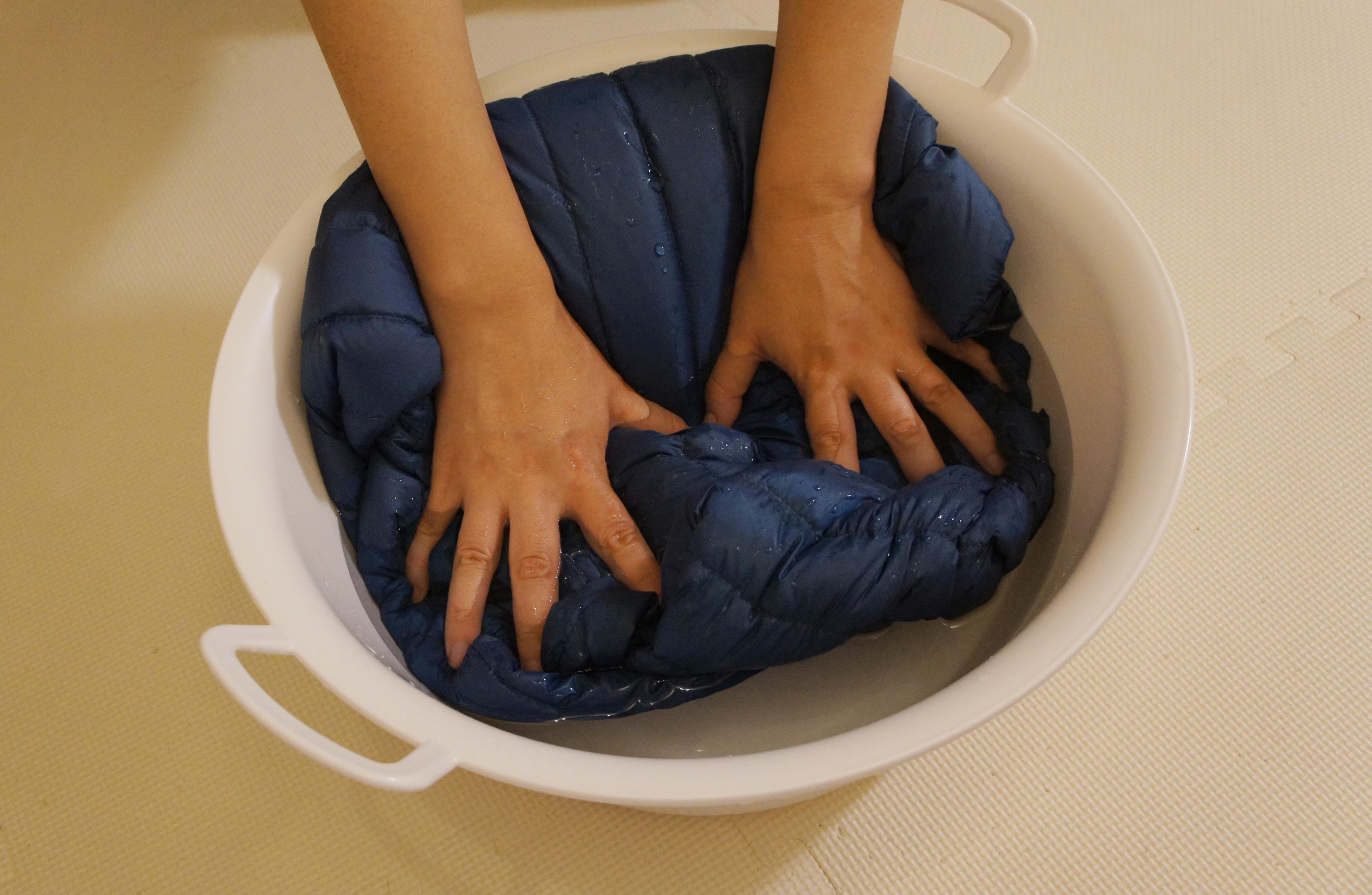 30℃以下の水に洗剤を入れて溶かし、ダウンをやさしくていねいに押し洗いしましょう。