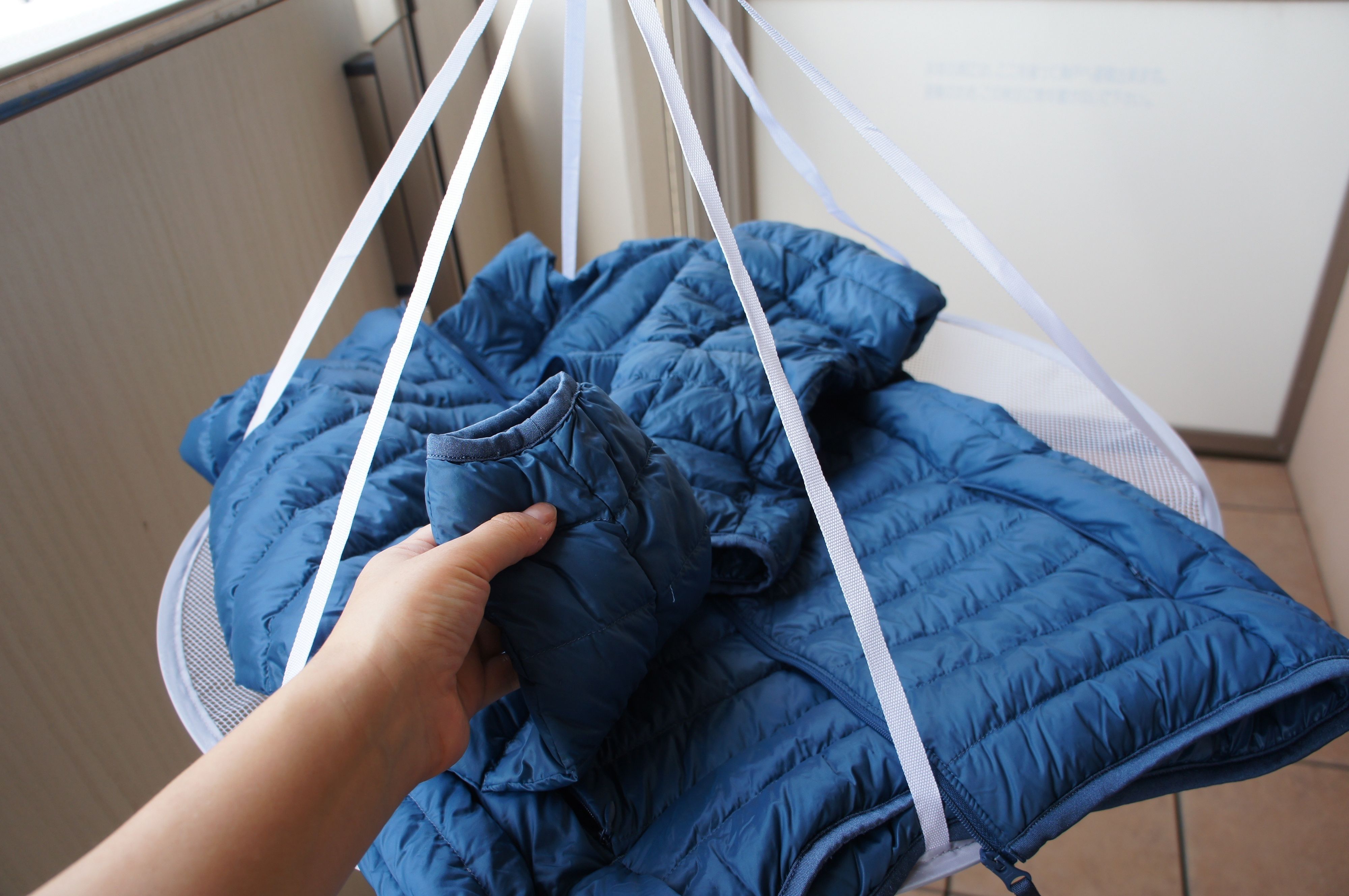 1.羽毛が浮かないように押し洗い