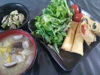 あしたばさんのこの日のメインディッシュは、ピザ風・ハムチーズ入りの2種の春巻き。ささっと巻くだけできちんとした献立に仕上がるため、ご飯作りに時間をかけたくないときにもぴったりです。簡単にできて子ども受けもいいメニューは、ママの強い味方になりますね!