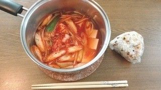 きゃんちゃんさんのこの日のひとりランチはキムチ鍋。どうしても辛いものが食べたくなり、このメニューにしたとのこと。片手鍋などの小ぶりなサイズの鍋を使えば、ひとり鍋も簡単に作ることができます。