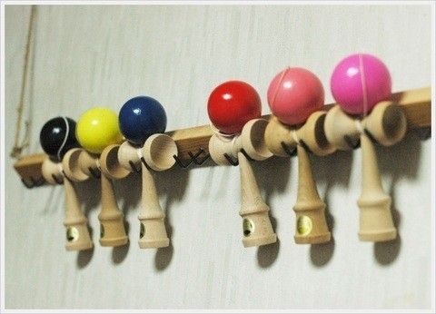 ママーリオさんはなんと壁に趣味のけん玉を収納しています!専用の物は高いので木材や釘を使って自作したそう♪きれいに並んだけん玉はインテリアにもぴったりで使いやすいそう♪すぐ使えるので練習しやすい!
