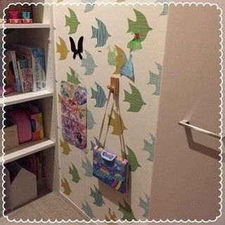 子ども部屋にも壁面収納を取り入れています♪こちらは無印良品の「壁にかけられるフック」というものをつかっているそうです。定位置が決まるので子どもが自分でお片づけするのにいいですね♪木の質感がおしゃれです!