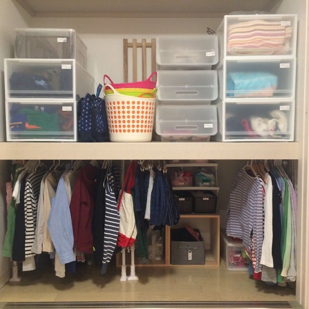 子どもが小さい頃から、自分の服は自分でたたむことを習慣づけている暮人さん。ある程度大きくなり洋服を持ち運ぶ機会が減ったら、ハンガー収納にチェンジ!習い事で忙しい子どもたちも、ハンガーごと服をしまうだけなら簡単にできます。吊るす高さを子どもの身長に合わせるなど、子どもが片付けやすい環境づくりも大切ですね。