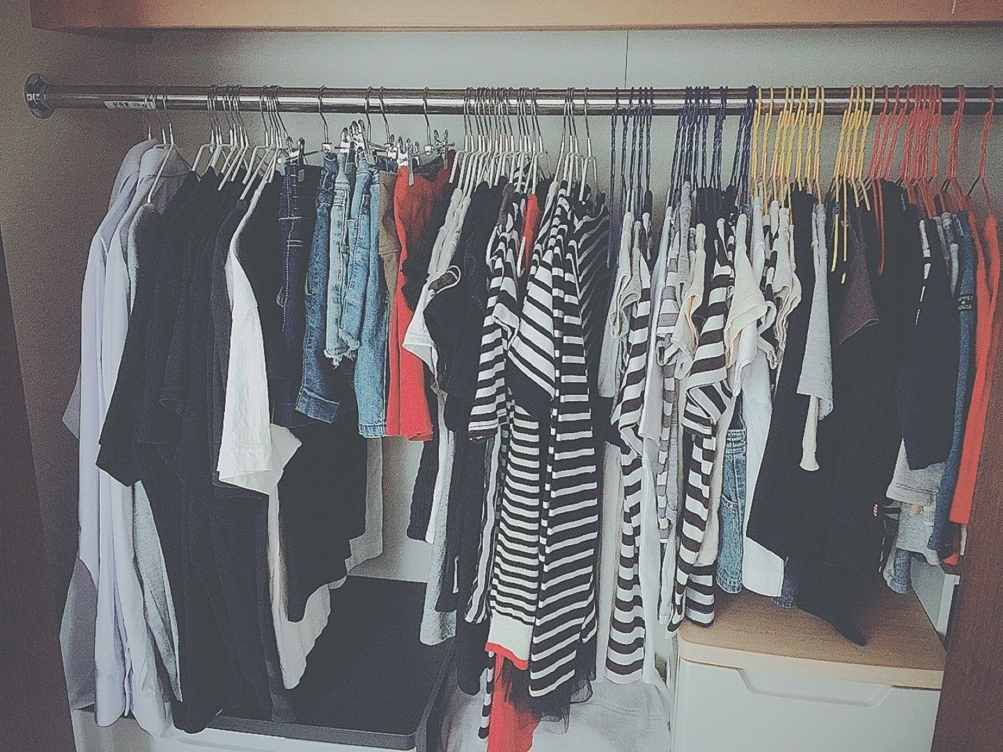 ブロガーのIDUMIさんも、よく着るTシャツ・キャミソール・ジーパンなどを厳選し、ハンガーにかけて収納!たたむ手間が省けるだけでなく、どの服がどこにあるのかパッと見てわかるのがお気に入りです。子どもの服はたたんで収納しているそうですが、自分の服だけでもたたまずに済んだらずいぶん楽になりますね。