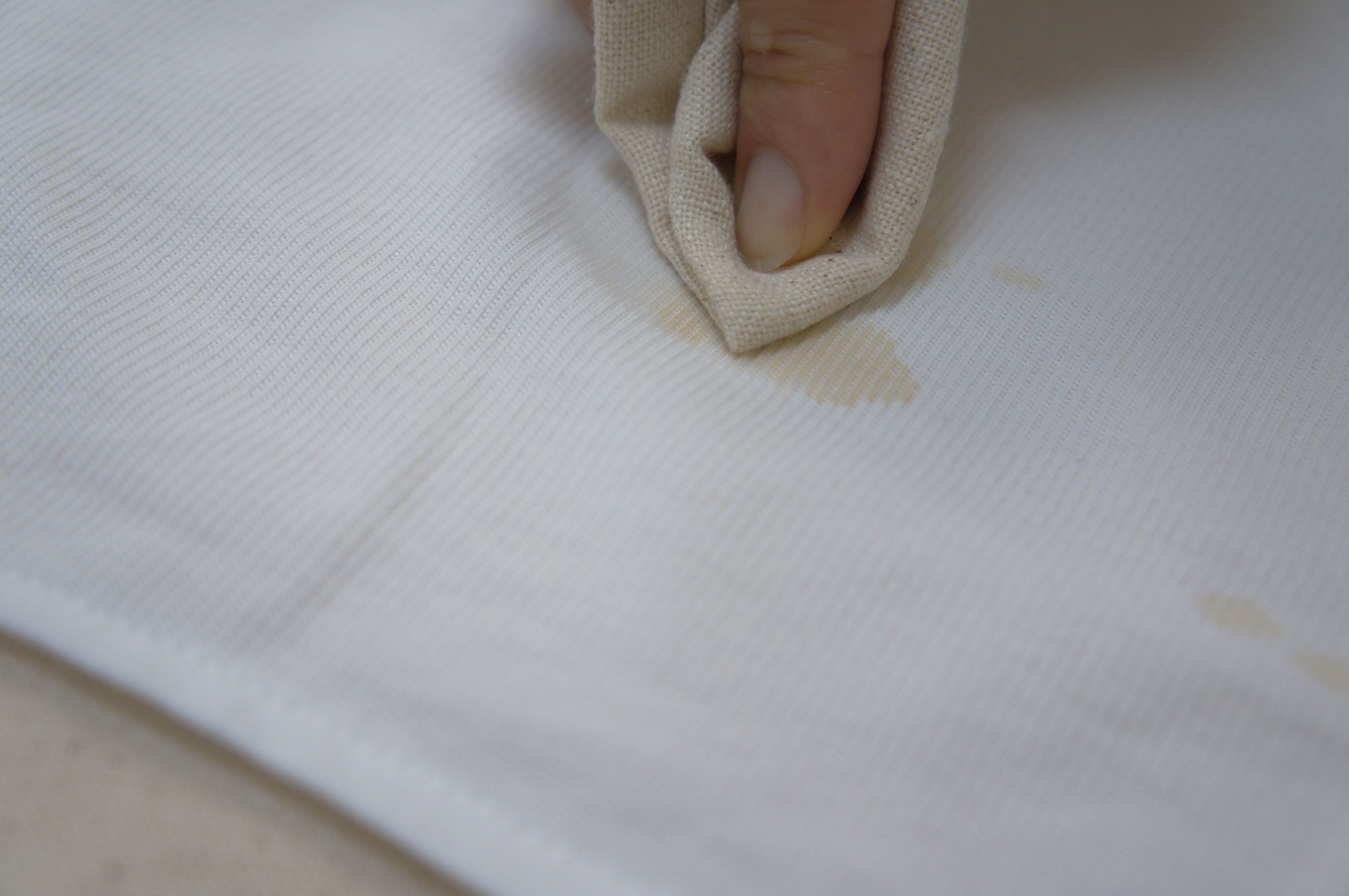 シミがついた部分を裏返し、下にあて布を敷きます。水でぬらした布で、シミ部分を裏側からたたき、あて布にシミを移しましょう。