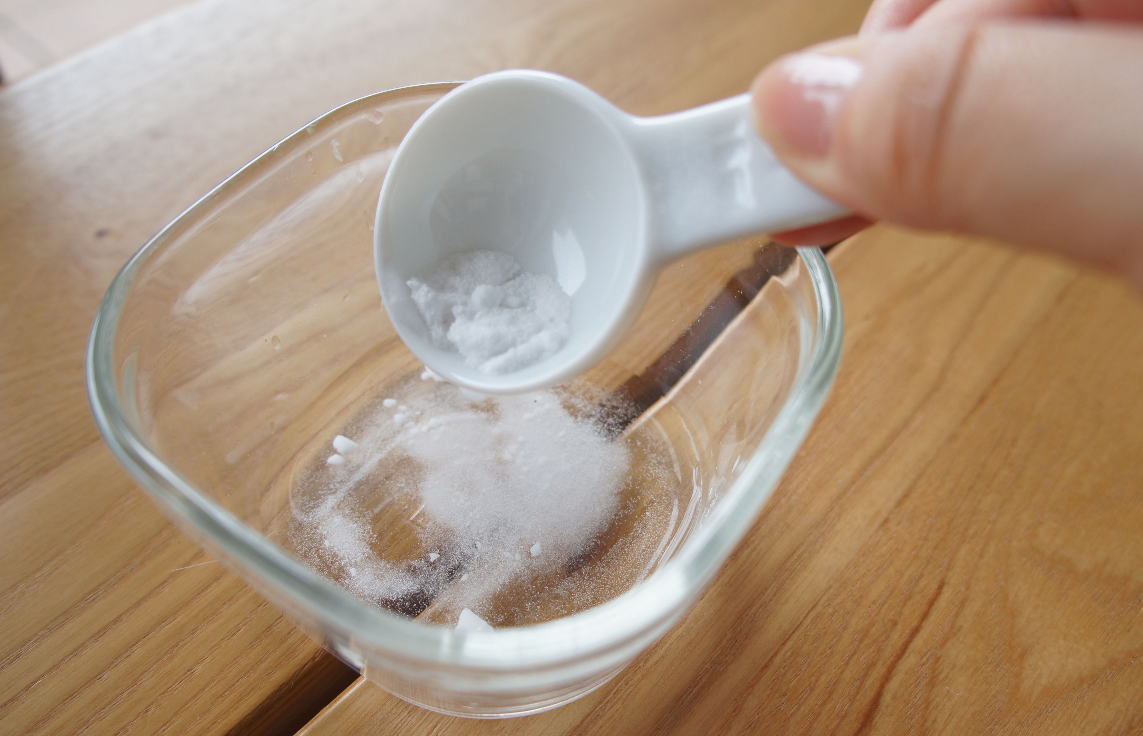漂白剤と重曹を1:1の割合で混ぜ合わせます。