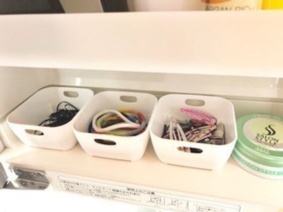 yuncoさんは、鏡裏にある収納棚の一番下の引き出しを取り外し、できた空間にセリアのケースを並べて、ヘア小物を収納しています。取り出しにくかった引き出しを無くしたことで、プチストレスもなくなり、そのうえスッキリとした印象になりました。