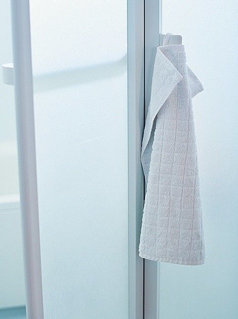 厚手で乾きにくいバスマットの代わりに、ループつきハンドタオルを使用。家族全員、浴室で体を拭いてから上がる習慣なので、これ1枚で充分。使ったあとはつるして乾かしてから洗濯しています。
