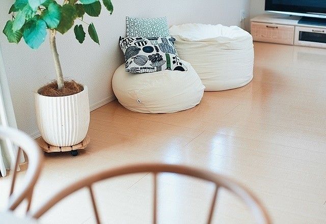 ソファがあると、洗濯物をつい置きっ放しに……。ソファをなくすことで、お菓子の食べかすやおもちゃが奥に入り込むこともなくなり、面倒なカバーの手入れも不要に。