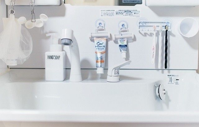 トイレや洗面所は、毎朝行ったついでにメラミンスポンジで掃除するだけ。あとは夕食後、洗い物の際に排水口を掃除しスポンジはゴミ箱へ。毎日やれば汚れもたまらないから、サッとこするだけで洗剤も不要。