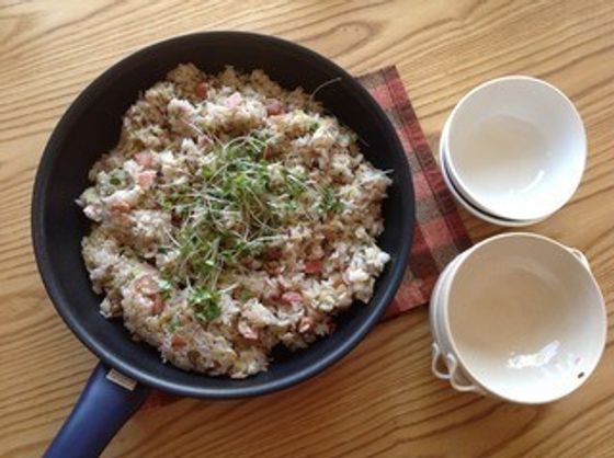 こちらも中島愛さんが週末の昼ごはんによくつくるという、手抜きならぬ超時短メニュー。名前通り、冷蔵庫に残ったいろいろな野菜と冷凍庫の残りご飯、そこにソーセージやベーコンを加えてチャーハンに仕上げます。フライパン1つで簡単につくれるだけでなく、冷蔵庫の中身もムダなくスッキリ!まさに一石二鳥のメニューですね。