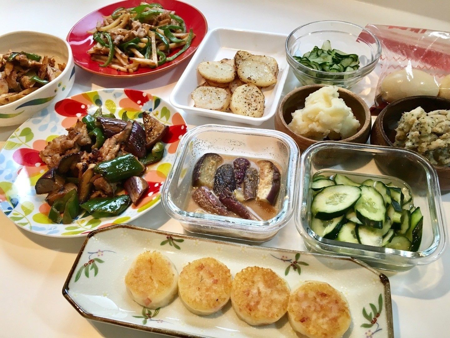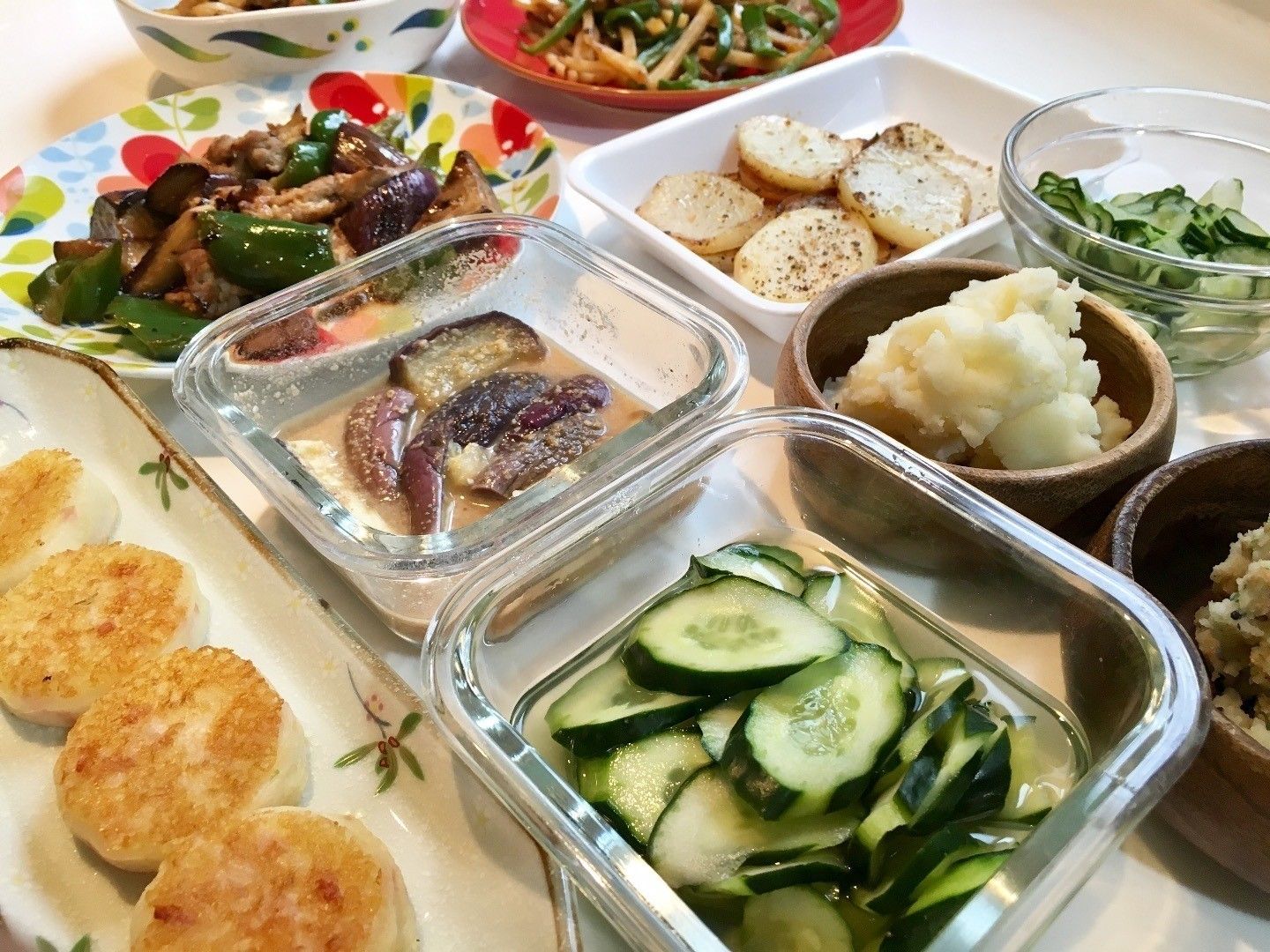 毎日の献立で悩まないように、週2回まとめづくりをしているブロガーの小比類巻亜弥さん。メイン・副菜になりそうなものを数日分まとめてつくり、切り方や味つけを変えるなどのアレンジを加えたうえで食卓に並べています。副菜を作っておけば、夕飯の準備は肉や魚、汁物を用意するだけでよくなるため、自分の時間が確保できるそうです。