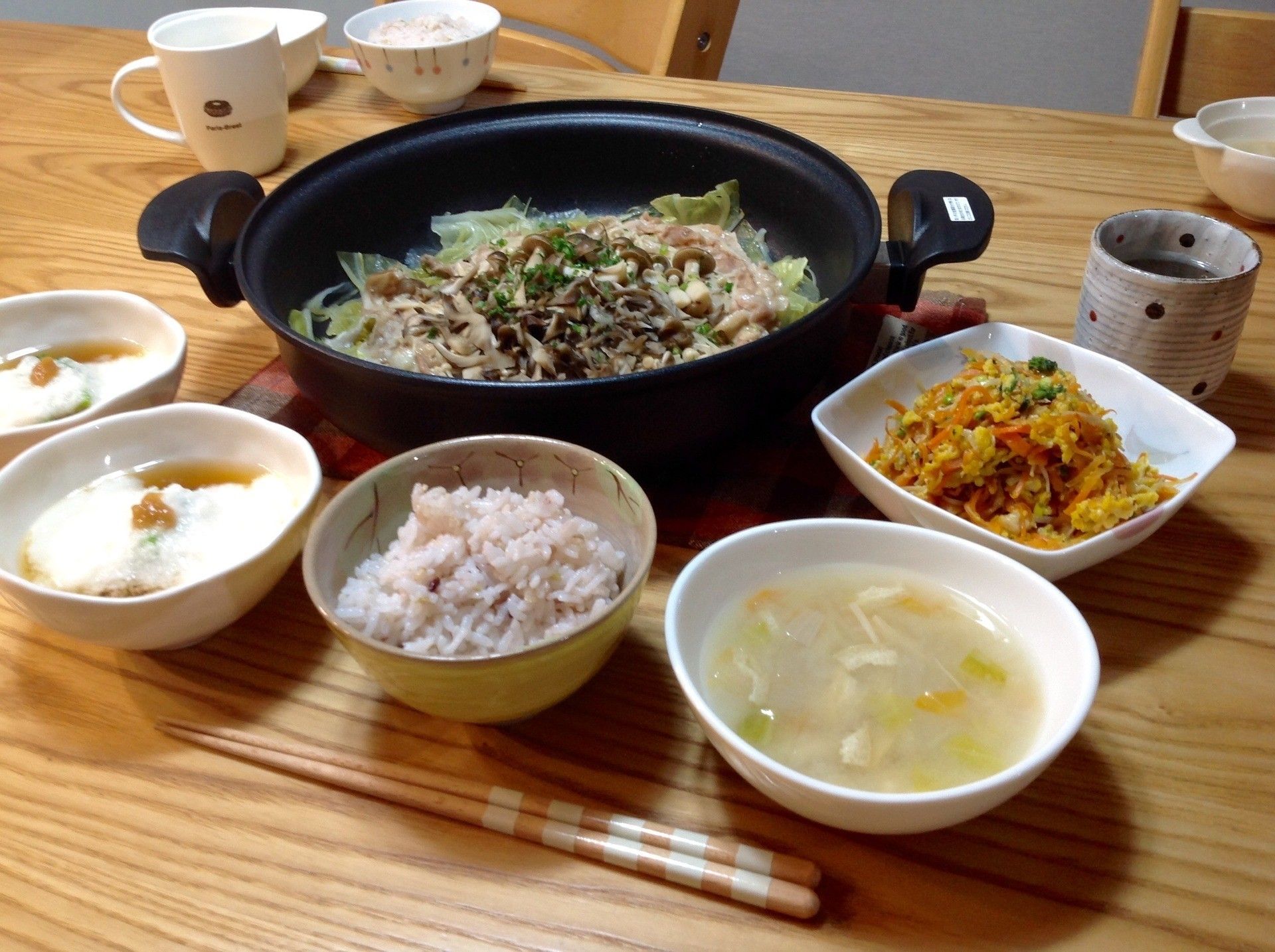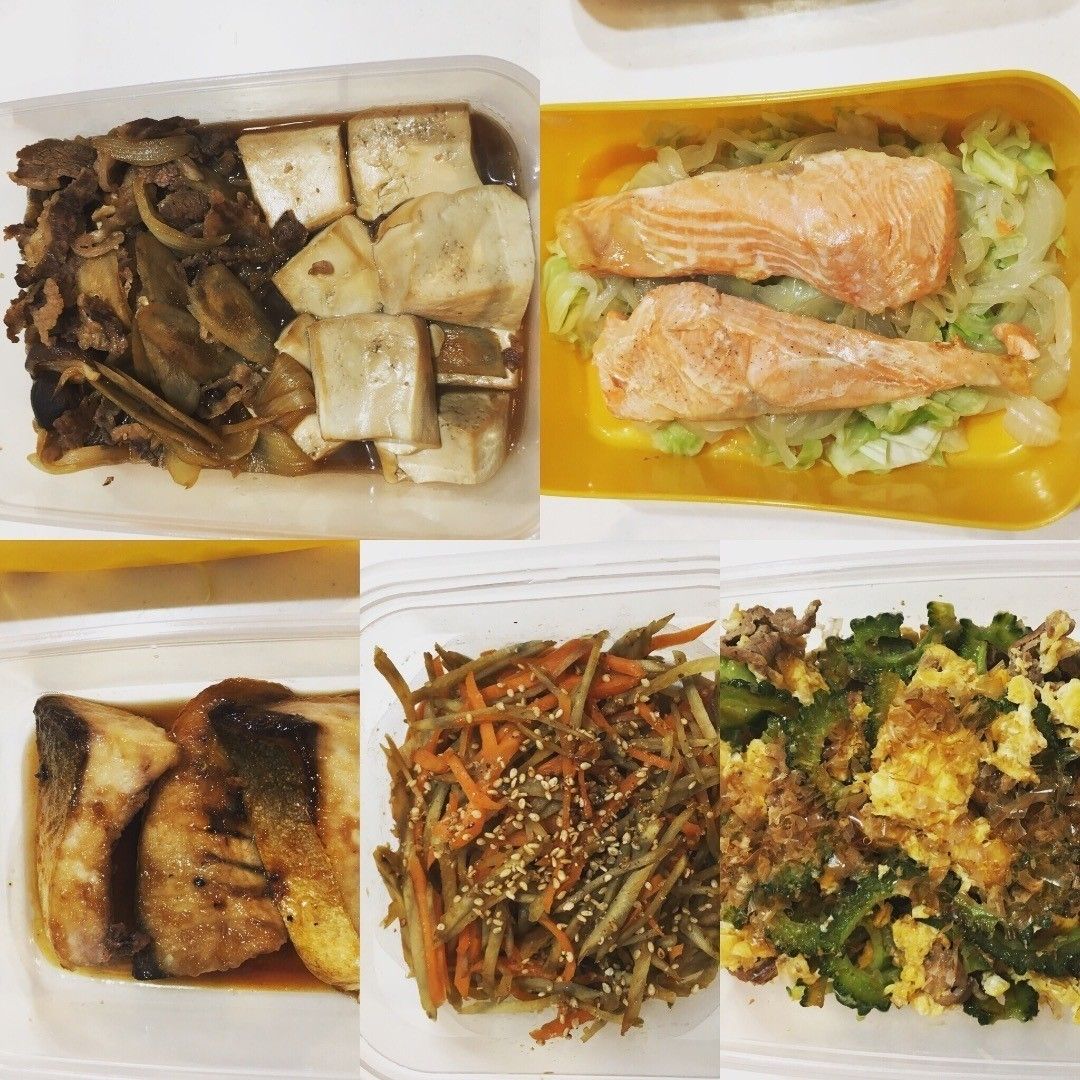 木曜は魚、水曜&金曜は肉。土日の昼夜も定番化しているメニューや両実家での食事などで乗り切っています。レパートリーを増やさずローテーションすることで、効率アップ!副菜にはゆで野菜や豆腐や厚揚げなど大豆製品が便利だそうです。