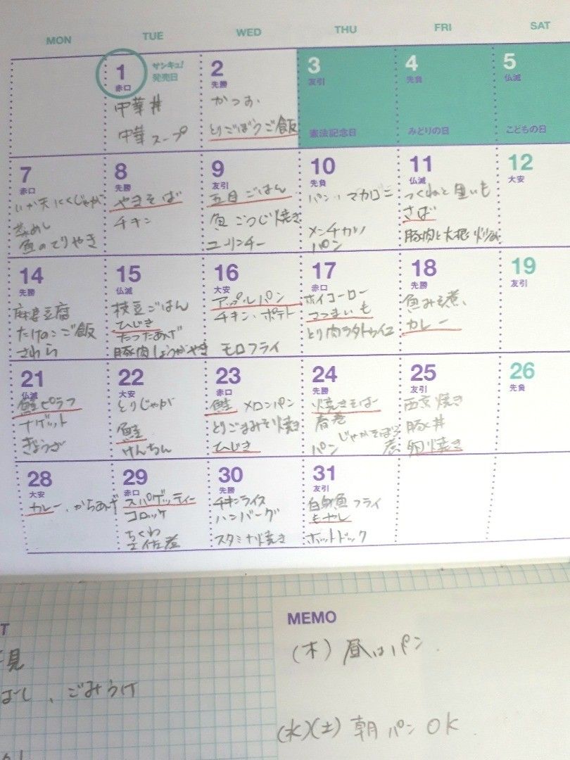 1週間分の夕食のメインの献立に、ゆるい枠組みを作っているyukiiiさん。月曜は豆腐、火曜&