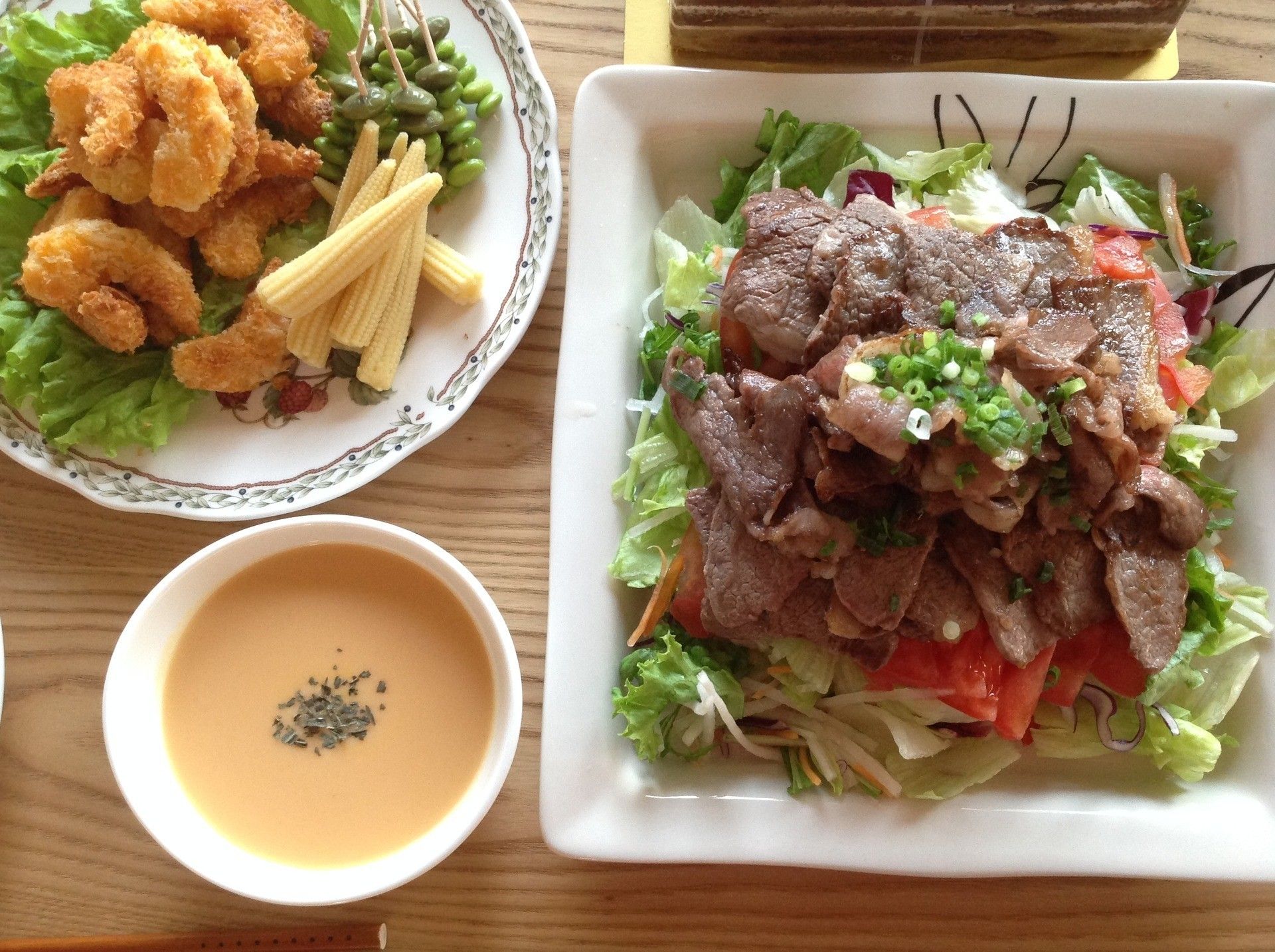 焼いたお肉を生野菜の上に乗っけてドレッシングをオン。盛るだけの簡単レシピなのに、豪華に見えませんか!家族みんなが満足できるレシピです。