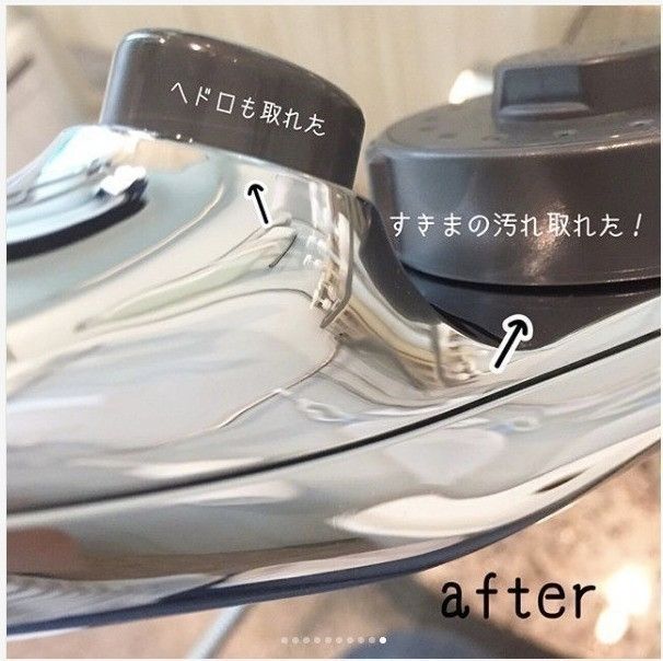 まずは蛇口と同じように、重曹とクエン酸を入れた水に1時間程浸けて置きます。お風呂に入ったついでに浸けておいて、翌朝次のステップに進むという時間活用術もおすすめ!