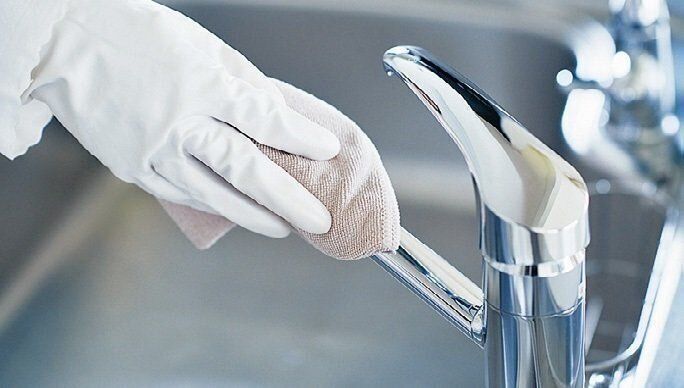 水でしっかりすすいだら、古タオルでから拭きする。蛇口はマイクロファイバークロスでから拭きするとピカピカに仕上がる。