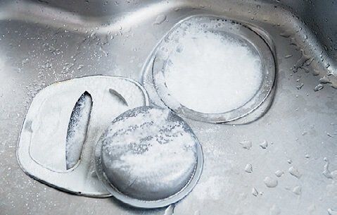 排水口内に約200mlの湯を注ぐ。泡が出てくるので10分放置。パーツを古歯ブラシでこすり、水で洗い流す。