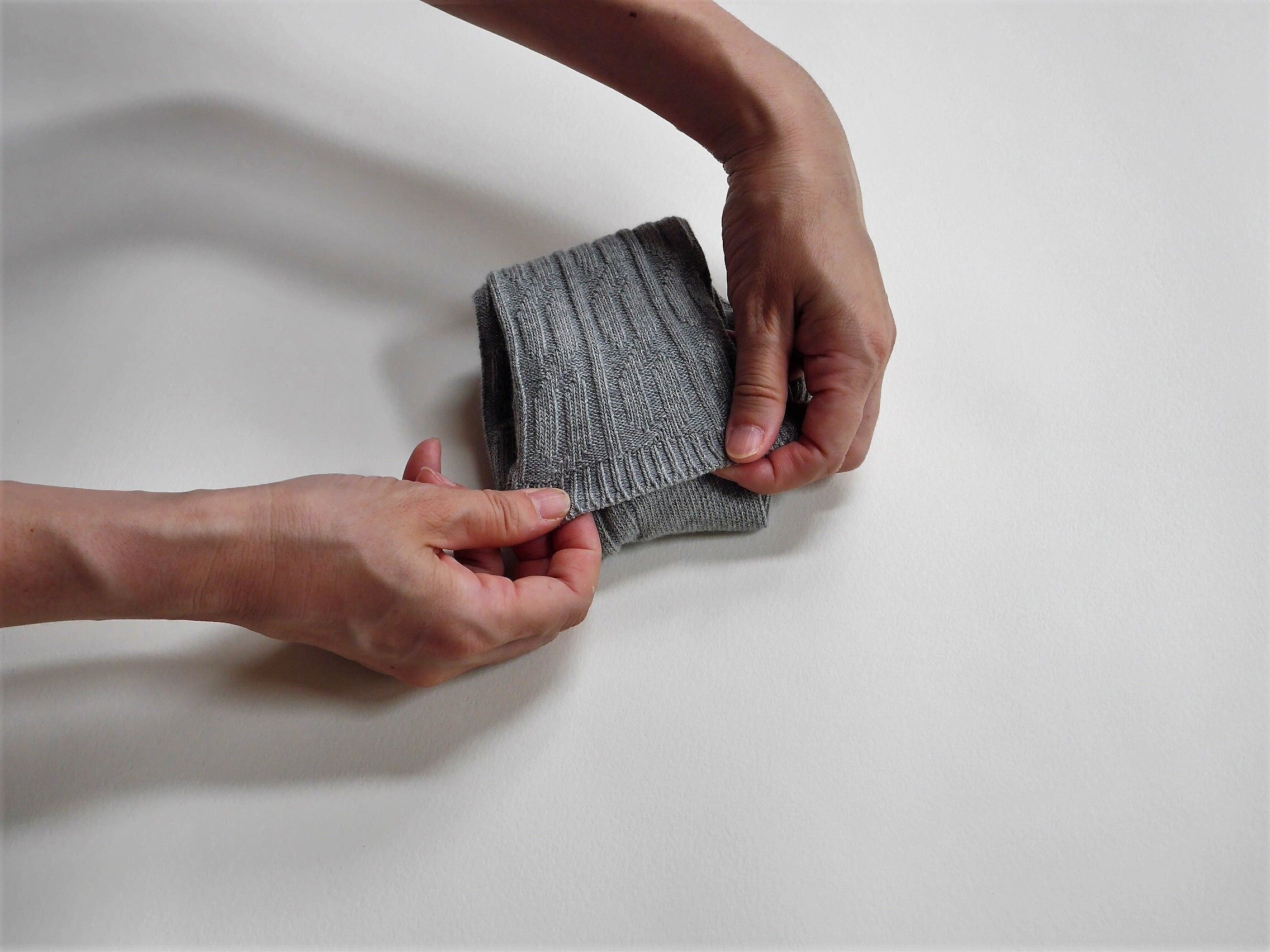 靴下の素早いたたみ方手順5:外側の靴下のはき口を広げ、全体をくるむように折り返します。