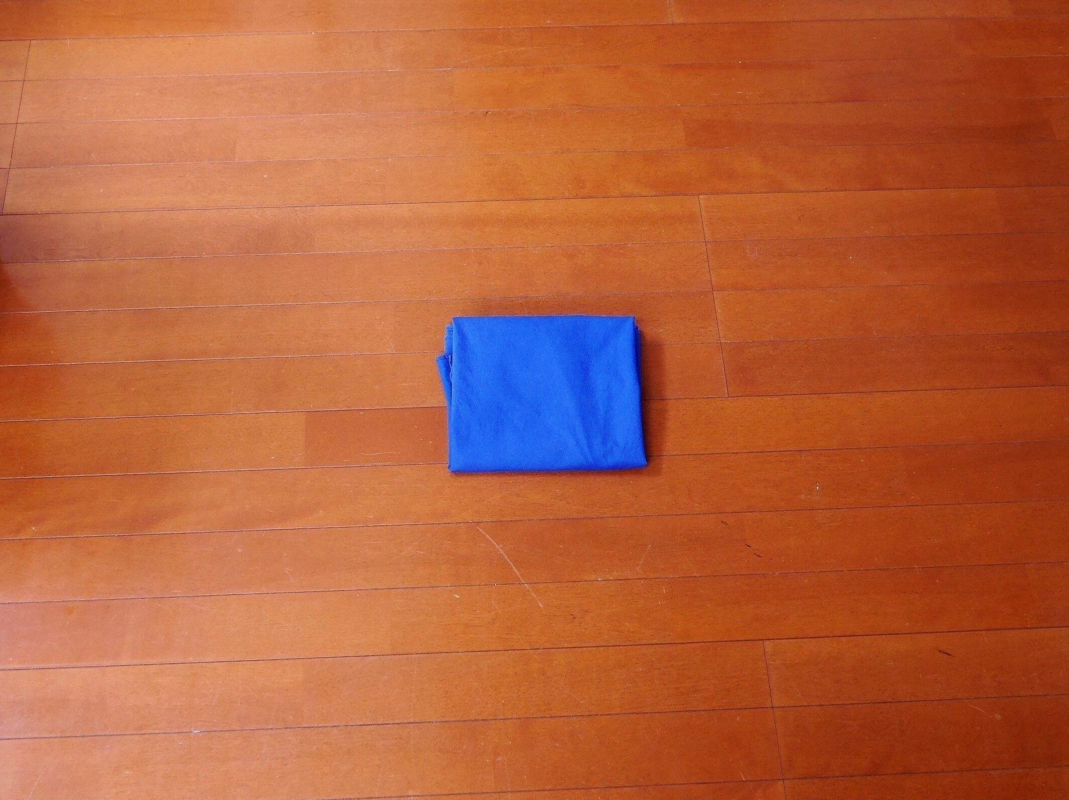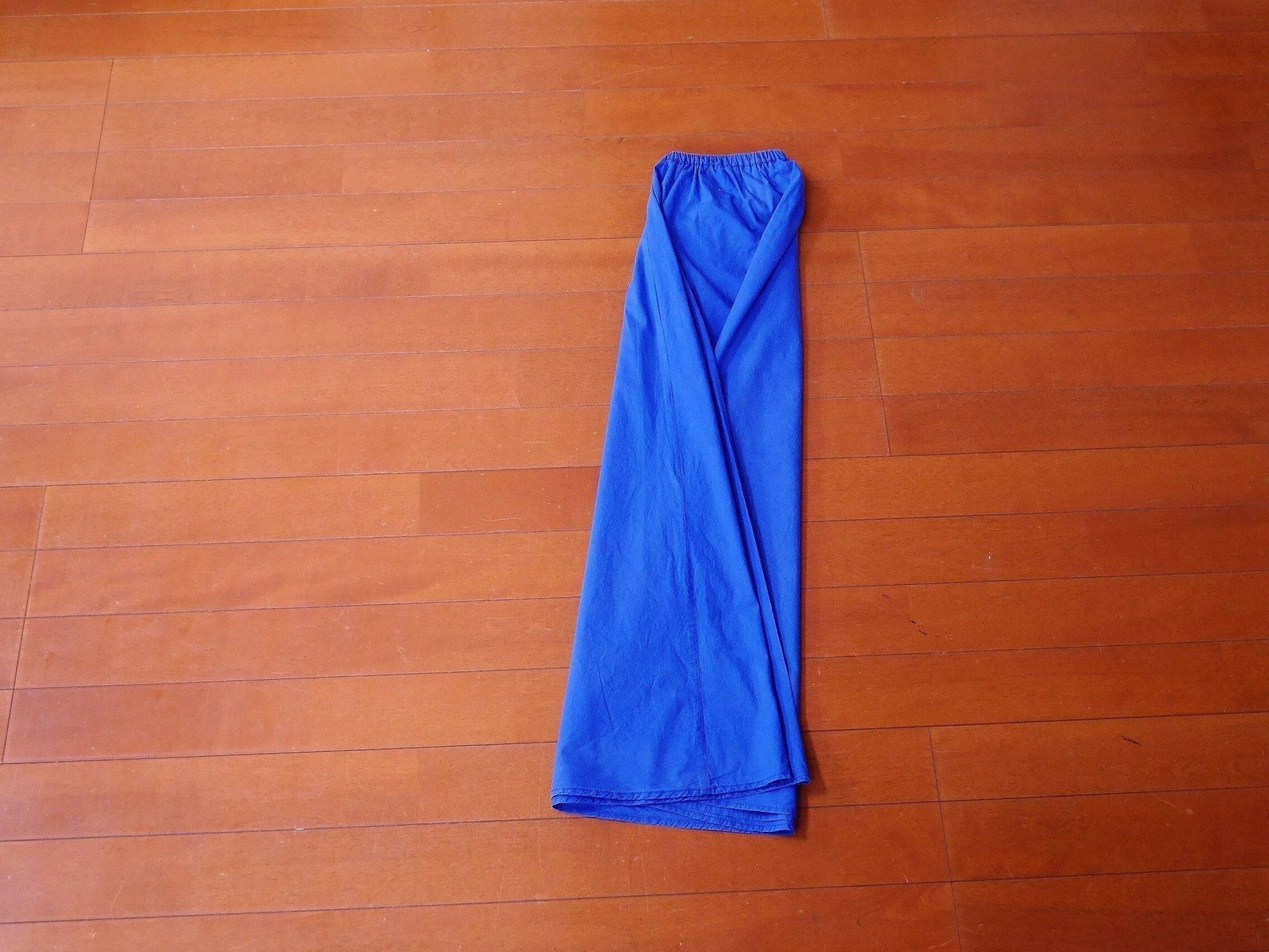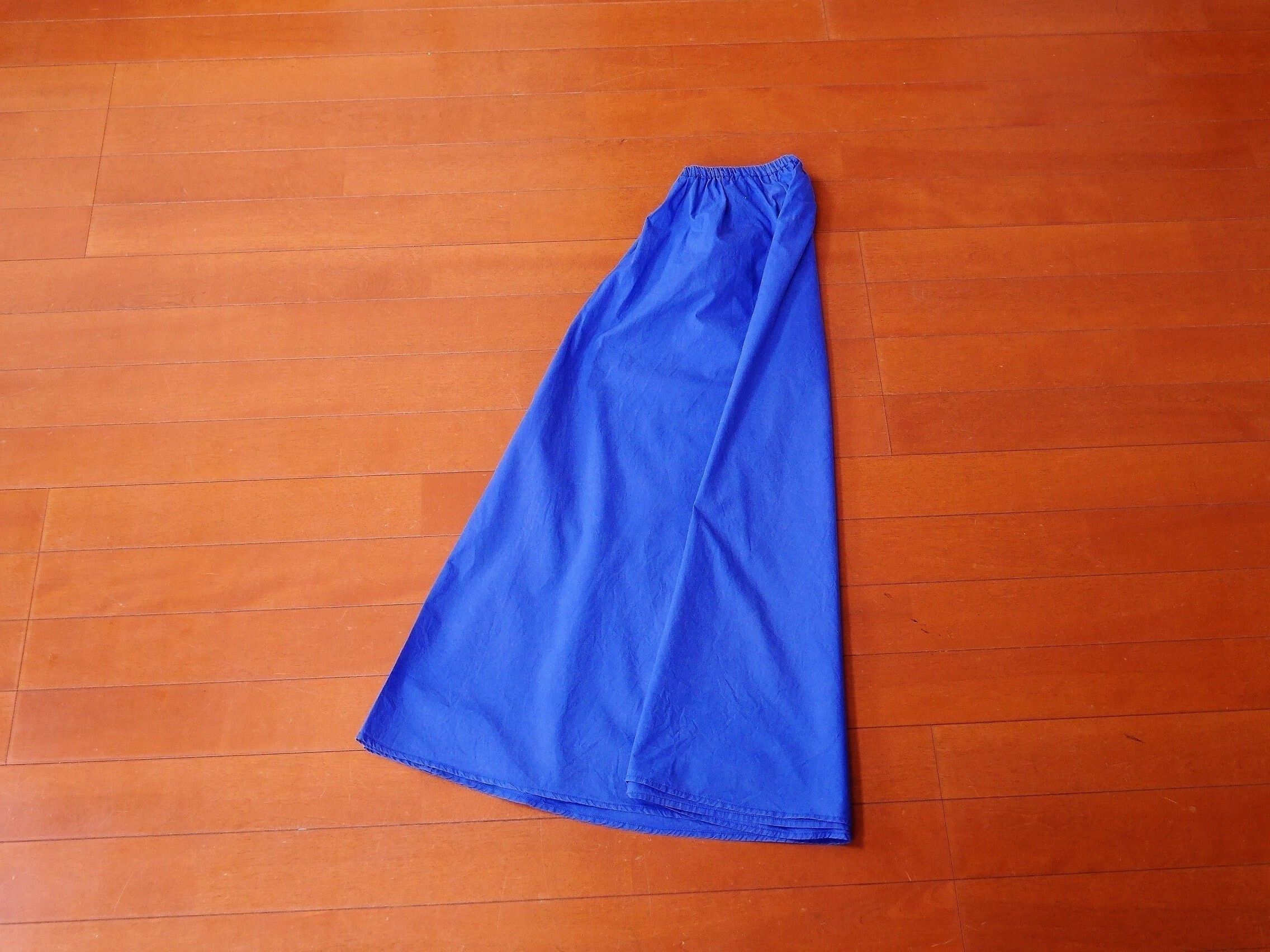 1.床にバスタオルを広げ、その上にスカートをのせて形を整えます。