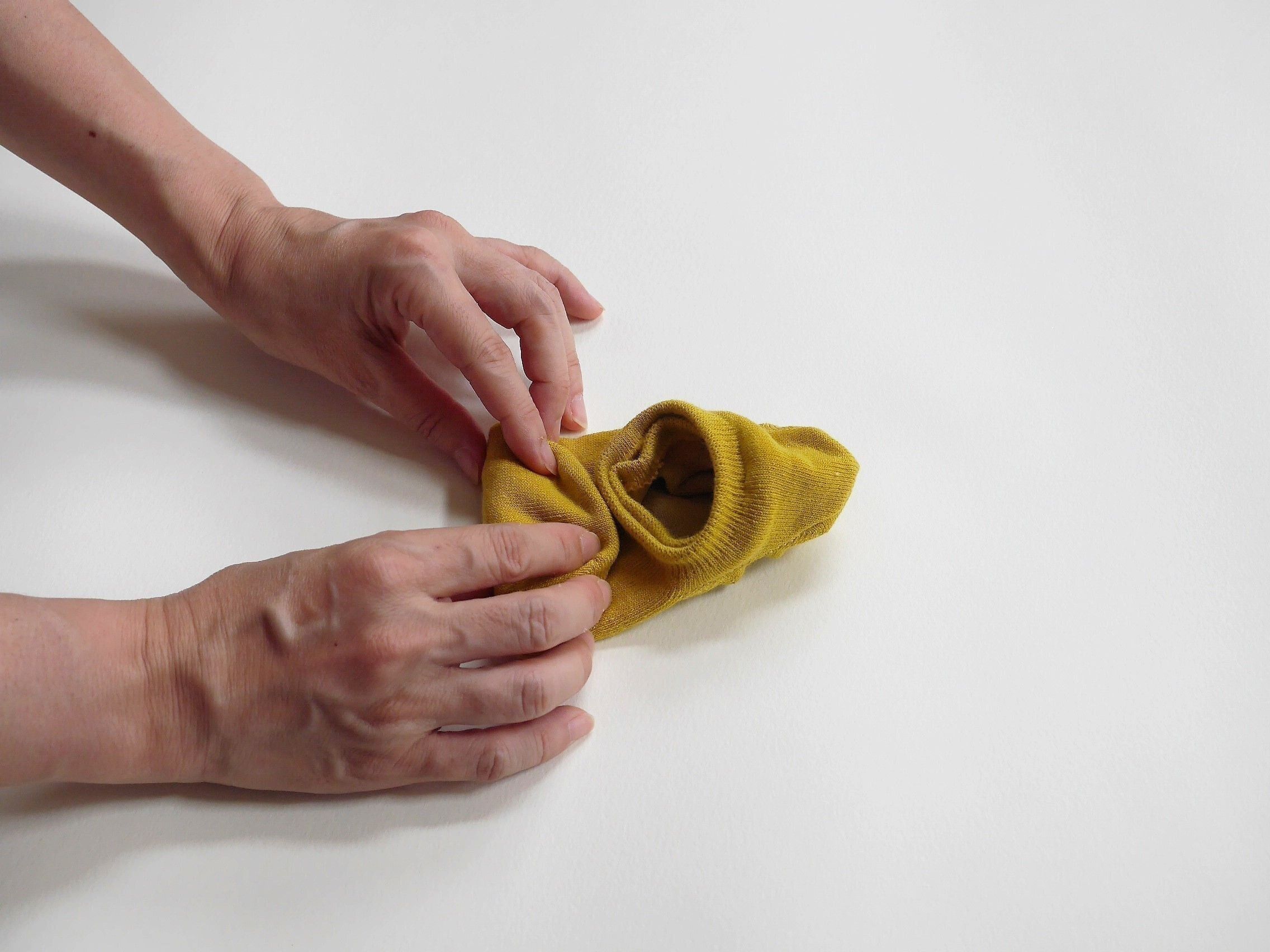 型崩れを防ぐ靴下のたたみ方手順4:外側のつま先部分を、外側のはき口の中に入れ込みます。