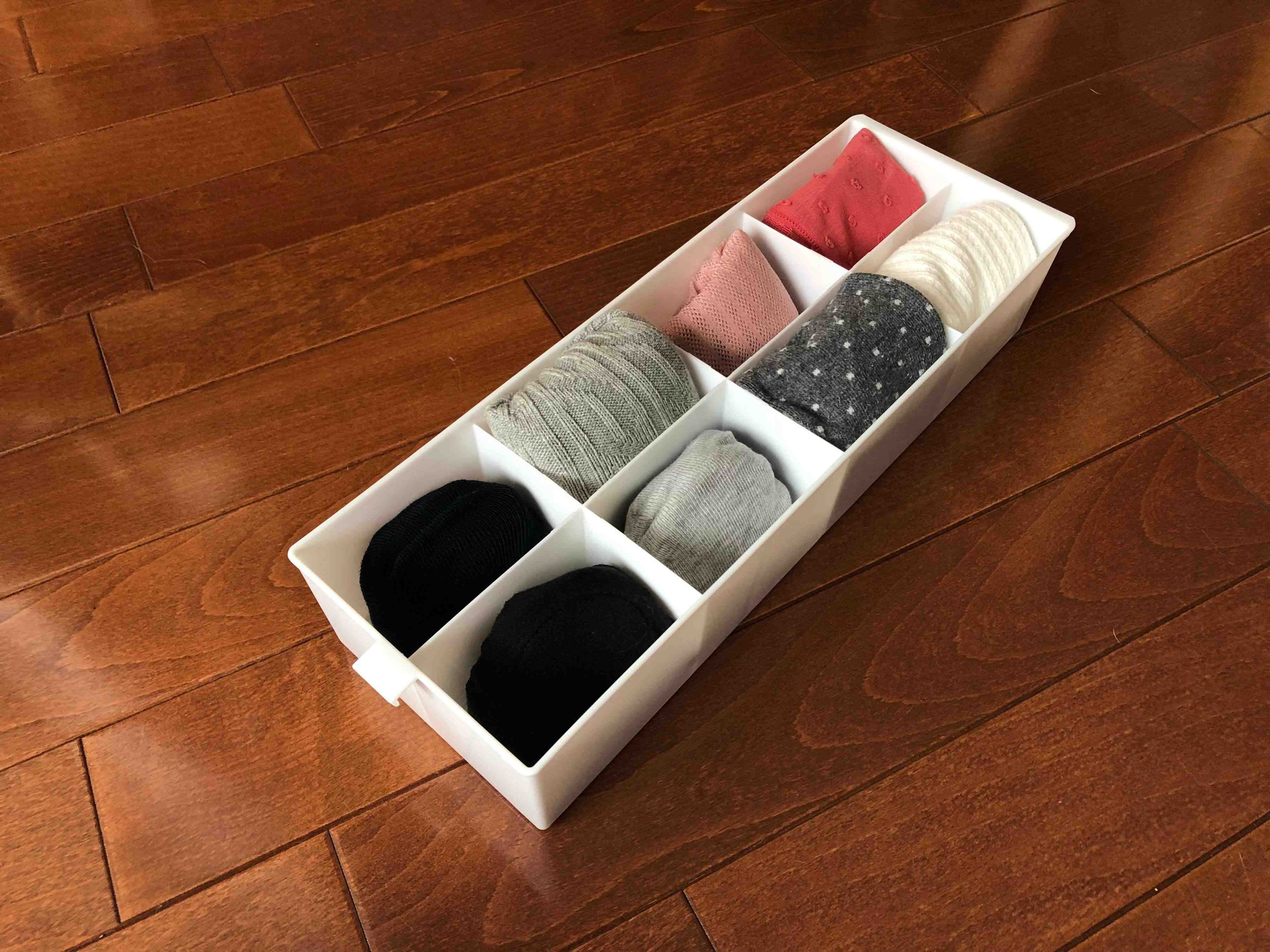 コンパクトにたたんだ靴下は、写真のような仕切りつきの収納アイテムに1足ずつしまうと、取り出しやすくて◎! クローゼットや引き出しなど、ご自宅の収納事情に合わせて使いやすいものを選びましょう。