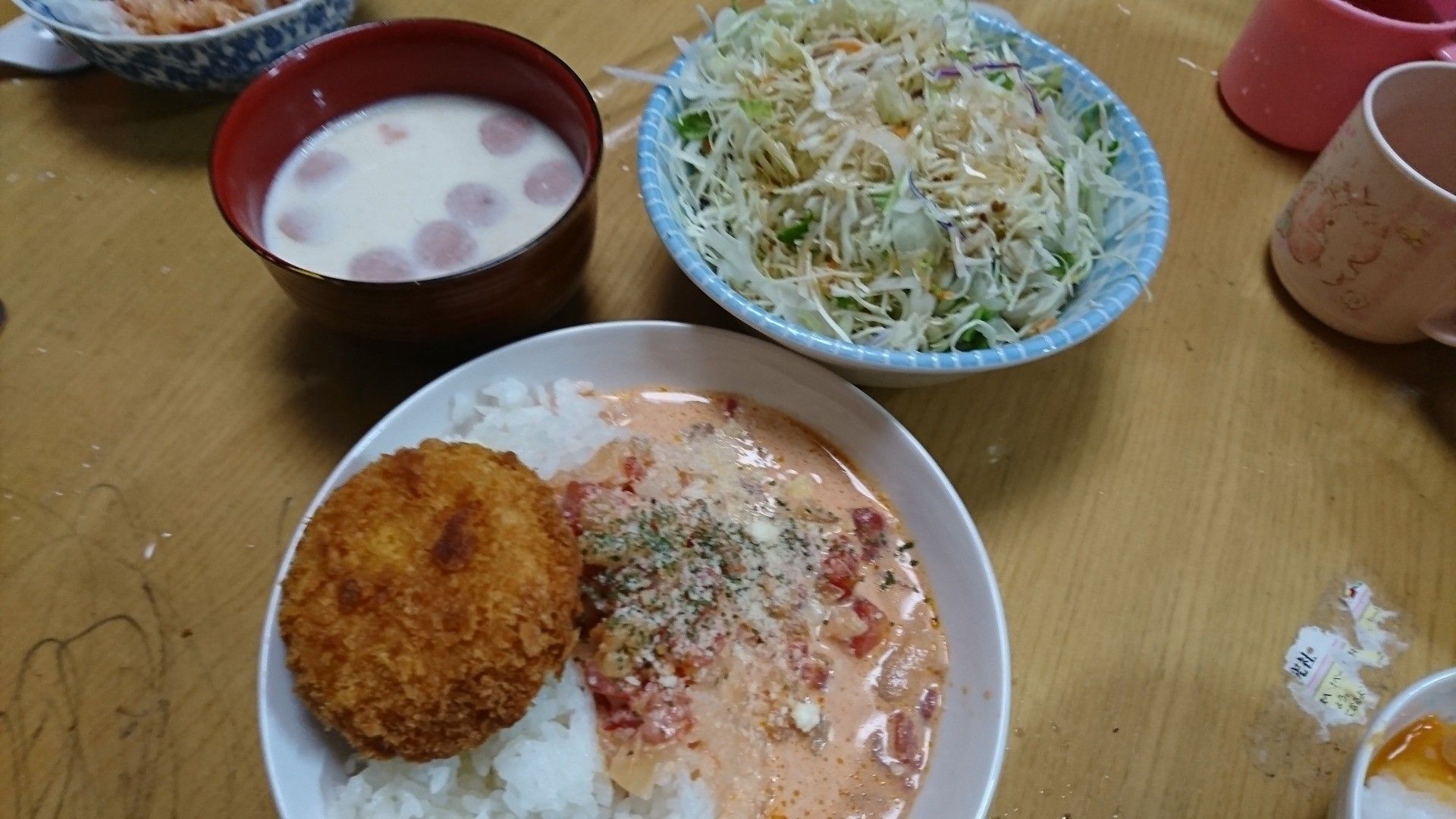 2525mitsucoさん家の夕飯では、業務スーパーの食材が大活躍!冷凍エビとトマト缶を使ったエビのトマトクリームソースは、冷凍エビを使っているので下処理が要らず時短に。揚げるだけの冷凍かにクリームコロッケも業務スーパーで購入したもの。ミルクスープにも業務スーパー食材のミックスベジタブルが入っています。