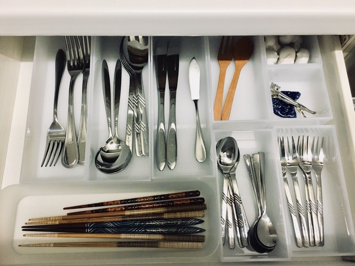 いずれのカトラリー収納も置き場所にピッタリとフィットしていて、見た目がキレイなだけでなく、使い勝手もよさそうですよね!収納ケース類を買うときは、置き場所とカトラリーのサイズをしっかり測り、無駄のないシンデレラフィットを狙ってみてくださいね。