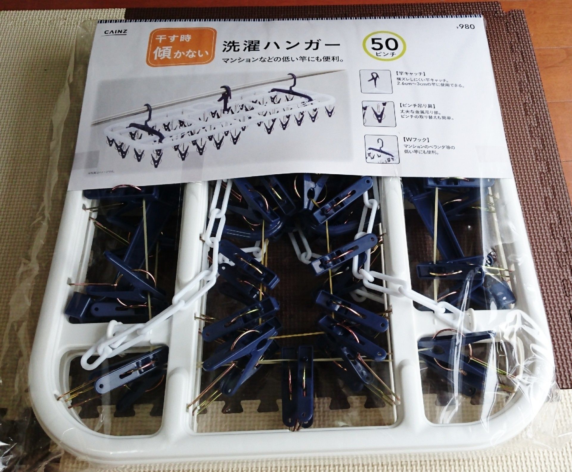 ohanaさんがカインズホームで購入した「傾かない洗濯ハンガー」も必見です。竿に3カ所のフックで引っかけるため傾かず、部屋干しの際のカーテンレールの変形も防止できるのだとか。洗濯バサミが50個もついているので、靴下やハンドタオルなどの小物や、厚手のズボンを筒状に干すときにも便利!これさえあれば洗濯上手になれそうですね。