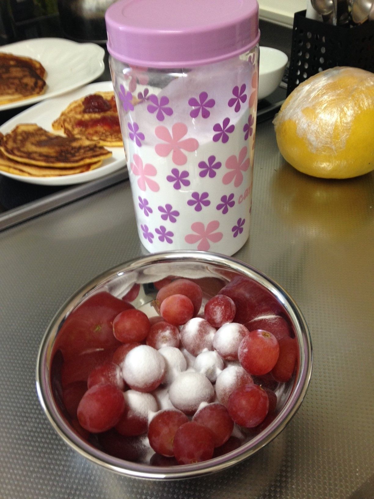 長井千恵さんは、果物や野菜を洗うのに重曹を使用しています。たとえばぶどうを洗うときは、まずボウルにぶどうを入れて重曹をふりかけ、20秒くらいグルグルとかき混ぜます。それから水洗いして水気をふきとると、皮がツルツル・ツヤツヤに!同じようにして、ミニトマトなども洗っているそうですよ。