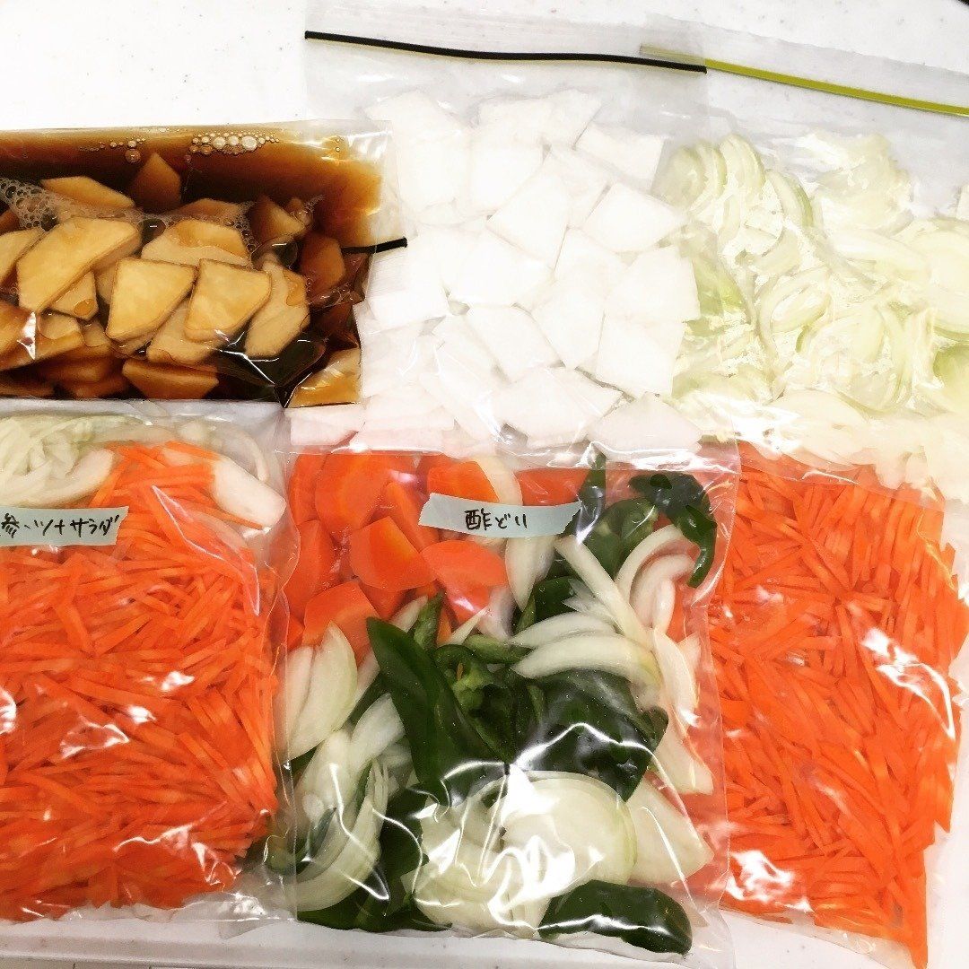 そんなナカムラマリコさんは、副菜づくりに冷凍ストックしておいたカット野菜を活用しています。カット野菜を耐熱容器に入れ、レンジでチンして味つけするだけで、あっという間に副菜が完成!空いた時間に野菜を切っておく“家事貯金”をすることで、忙しい日も献立がパッと決められますし、料理も時短できますね。