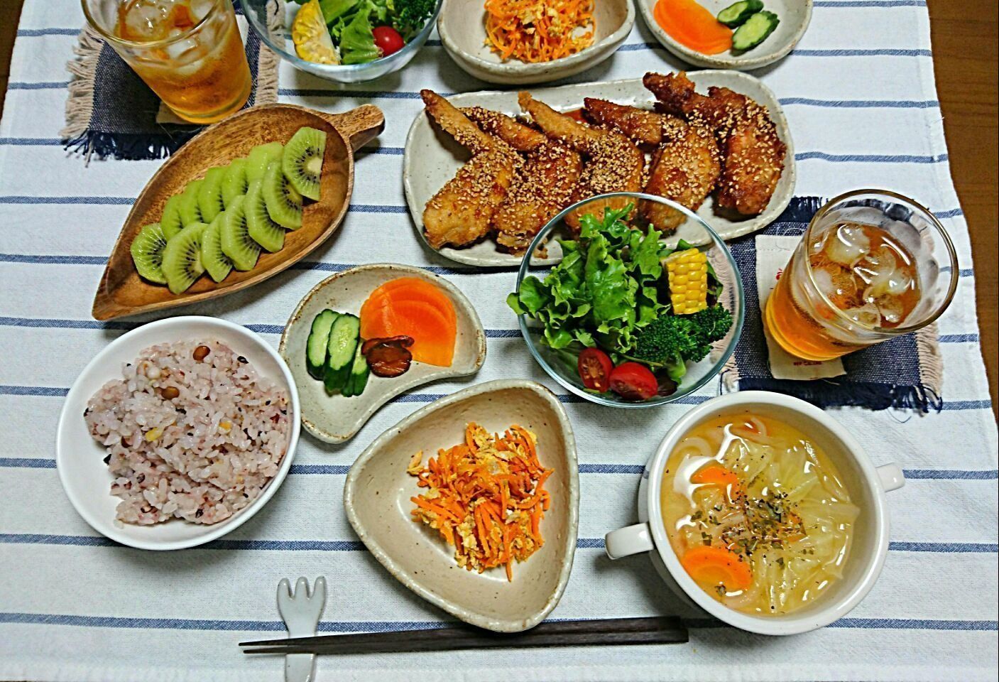 宮内有紀子さんは空いた時間を有効に使い、たくさんの常備菜を作り置きしています。全部で17種類も並んだ常備菜は、色とりどりでどれもおいしそう。栄養バランスもよさそうです。あらかじめ常備菜をつくっておけば、並べるだけで豪華な食卓が完成するので、夕飯の準備が楽になりますね♪