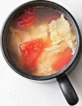 ふわふわ卵とトマトは相性ばっちり。大きめの鍋を使えば湯が早く沸くので、時短にもなりますよ。