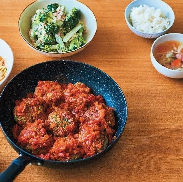 ハンバーグは、ひき肉2:豆腐1で作れば淡泊にならず、動物性と植物性のたんぱく質が同時にとれて、食事の質が上がります。ドミグラス缶やトマト缶など濃厚ソースで煮込むと、食べ盛りの子も大満足。