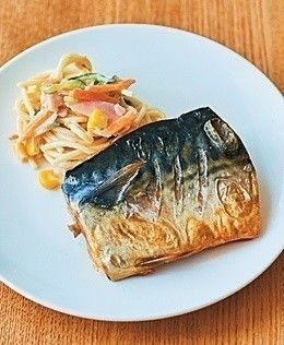 焼き魚やムニエルなど、ボリュームがたりない魚料理には、パスタサラダを添えれば即、解決。耐熱容器に水と塩、パスタを入れてレンジでゆでたら、バターやマヨであえるだけだからラク!