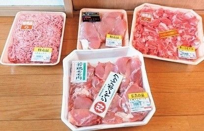 大量に消費する肉は、ジャンボパックでお得買い。比較的いつも安い豚こま切れ肉、鶏胸肉、鶏もも肉、豚ひき肉の4種類をとりあえず買っておけばメニューに困りません。