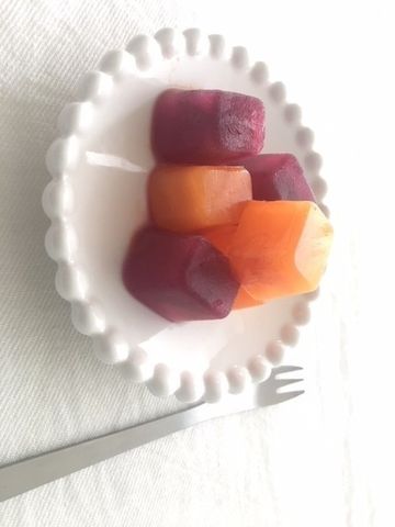 製氷器にジュースを入れて、冷凍室で冷やし固める。
