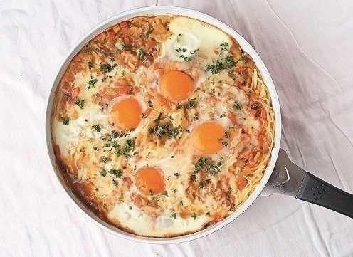 スター級のみんなの好きなものが集まりました。フライパンのままサーブして、あつあつをどうぞ!