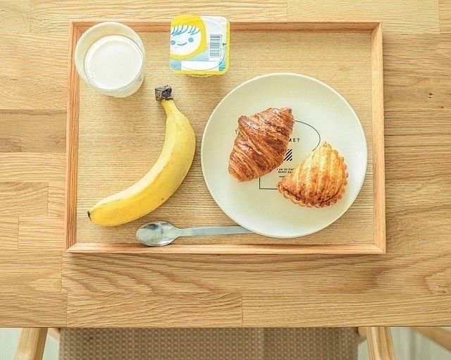 食事は1人分ずつトレーにのせる習慣に。配膳がラクになり、テーブルが汚れるのも防げます。食後はそのままキッチンに運ぶだけなので、後片づけの手間が減ります。