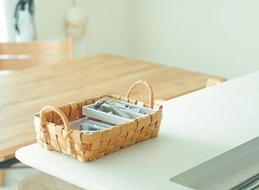 カゴの中の管理は夫自身に任せましょう。元々夫が物を置きがちな場所だから、腕時計や薬など夫の小物は、自然とここに集まります。