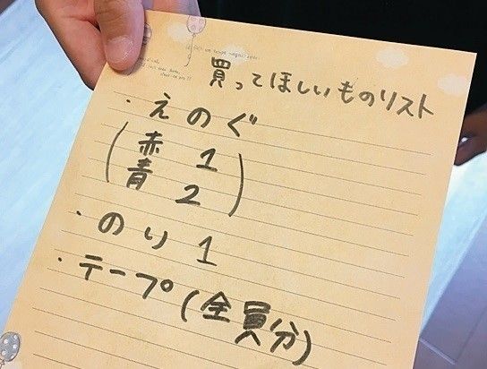 必要なものはメモにしてママに渡すルールに。長男、長女には自分の分だけでなく、妹や弟の分のリスト作りを手伝ってもらうと、意識が高まって◎。