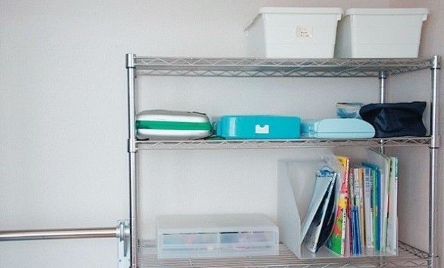 1カ所にまとめて保管すれば、子どもが自分で準備できてママの負担も軽減! きょうだいで交ざらないようきちんと分けておくことも忘れずに。