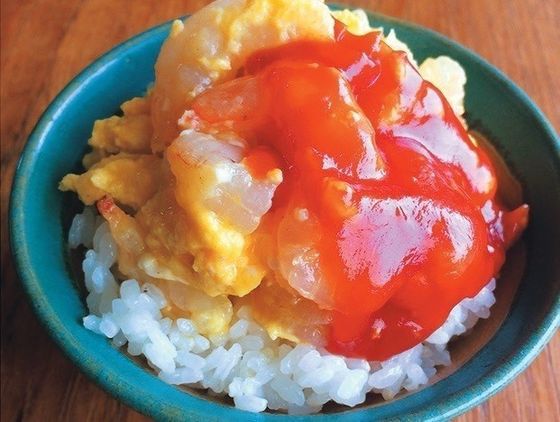 酒を入れた湯でサッと煮たえびを、ごま油で炒め、溶き卵を入れてふんわり炒めるだけ。甘酢あんをかけて、ご飯にのせても。