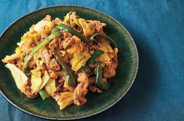 1.キャベツは4㎝大のざく切りにする。ピーマンはへたと種を除き、幅8㎜の細切りにする。