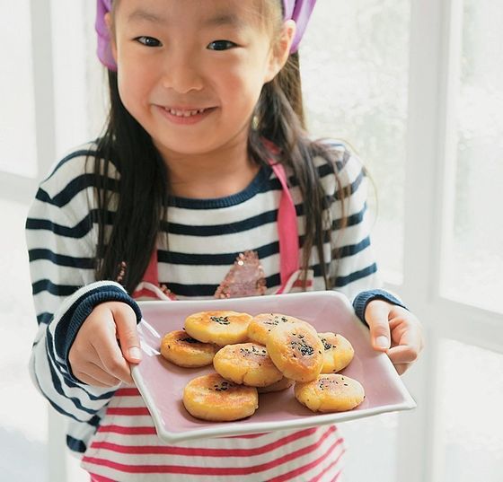 子どもはきっとノリノリでやってくれますよ!最後にフライパンで焼いて、香ばしく仕上げれば、ついつい手が出るおいしいおやつのでき上がり♪
