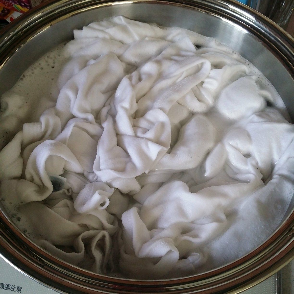 室内干しするときのタオルの臭いがとくに気になるという、ohanaさん。何回かに1度は洗濯機にぬるめのお湯と酸素系漂白剤を入れて、タオルや夫のシャツを洗濯しています。