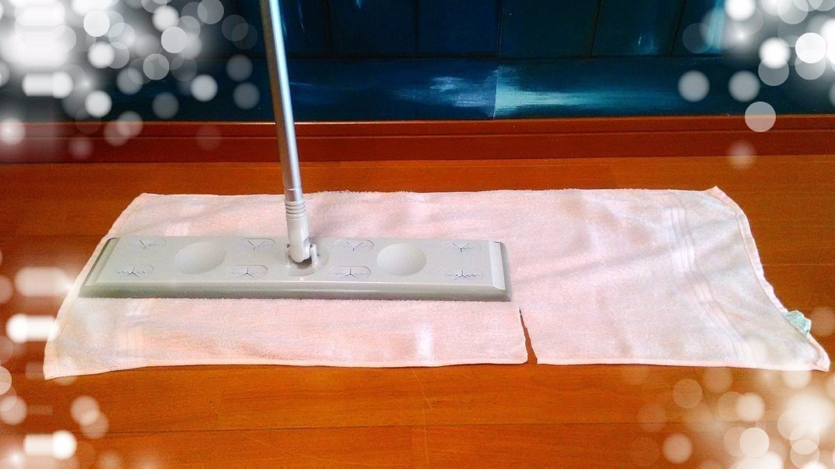業務用のフロアワイパーを使って、フローリング掃除をしているという堀江麻衣さん。専用のドライシートはコスパが高いため、捨ててもいい古タオルをワイパーの幅サイズに切って掃除に使っています。保水力が高いタオルなら拭き掃除に対応できますし、洗えば繰り返し使えるのでコスパも抜群です!