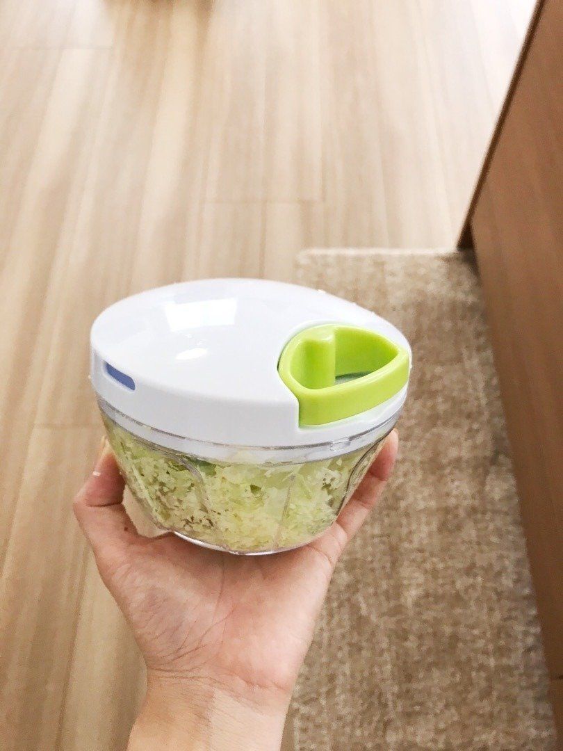 高尾ひかりさんがハマったグッズは「ぶんぶんチョッパー」。持ち手の部分を2~3回引くだけで、みじん切りができます。餃子をつくる際もキャベツともやしを入れて持ち手を引けば、あっという間にみじん切りに!お肉と混ぜたらそれで餃子のタネの完成です。これさえあれば、みじん切りが必要な料理も手早く簡単につくれます。