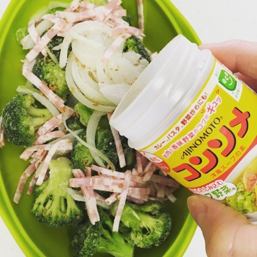 ナカムラマリコさんが作る時短献立は、「ブロッコリーのコンソメ煮」と「人参とツナのサラダ」の副菜2品。冷凍保存していた野菜やベーコンをコンソメなどの調味料と和えて、電子レンジで加熱するだけと作り方も簡単!時間のある週末に、野菜などのカットを済ませて家事貯金しておくのが、時短のポイントのようです。