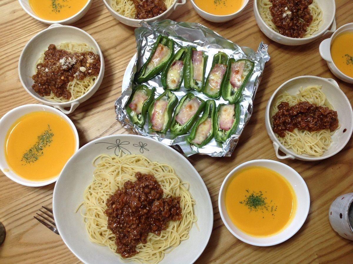 時短&節約献立に定評のある中島愛さん。半分に切ったピーマンに、ベーコンやチーズをのせてトースターで10分焼いた「ピーマンのチーズ焼き」や、トマト・生ハム・アボガド・ブロッコリースプラウトなどを切ってドレッシングかけただけの「絶品サラダ」など、時短だけれど子どもにも大人気の料理をたくさん作っています。盛りつけをワンプレートにしすることで、洗いものも時短にしているそうですよ!
